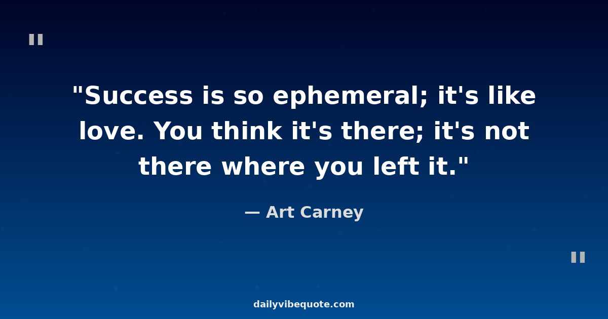 "Success is so ephemeral; it's like love. You think it's there; it's not there where you left it."
