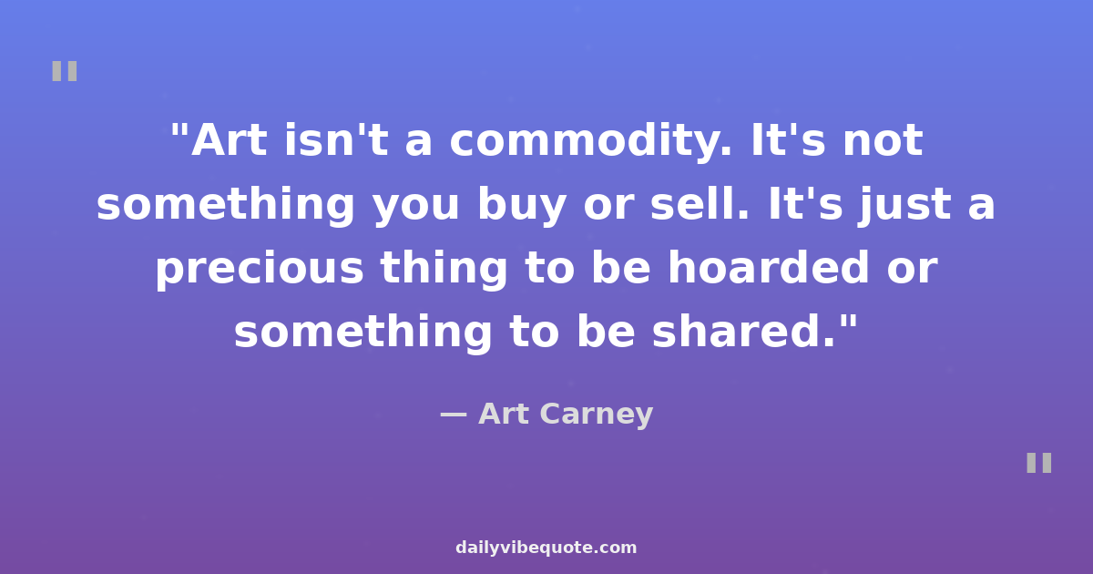 "Art isn't a commodity. It's not something you buy or sell. It's just a precious thing to be hoarded or something to be shared."