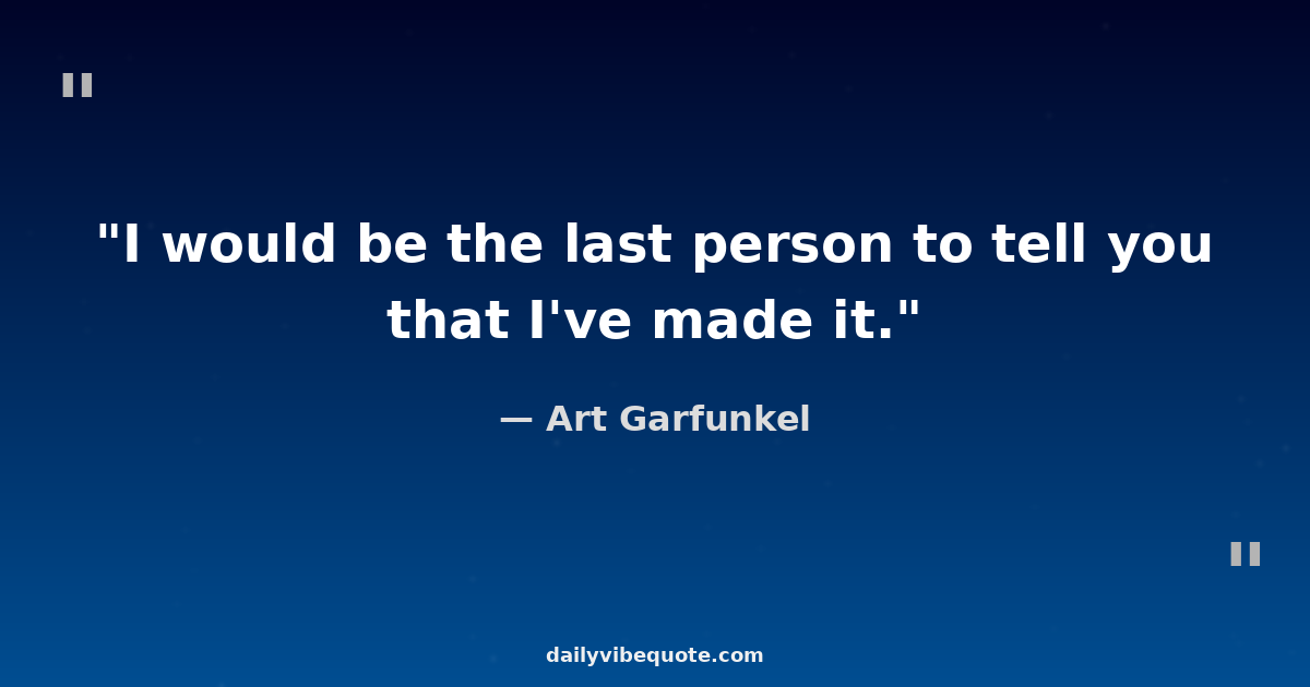 "I would be the last person to tell you that I've made it."