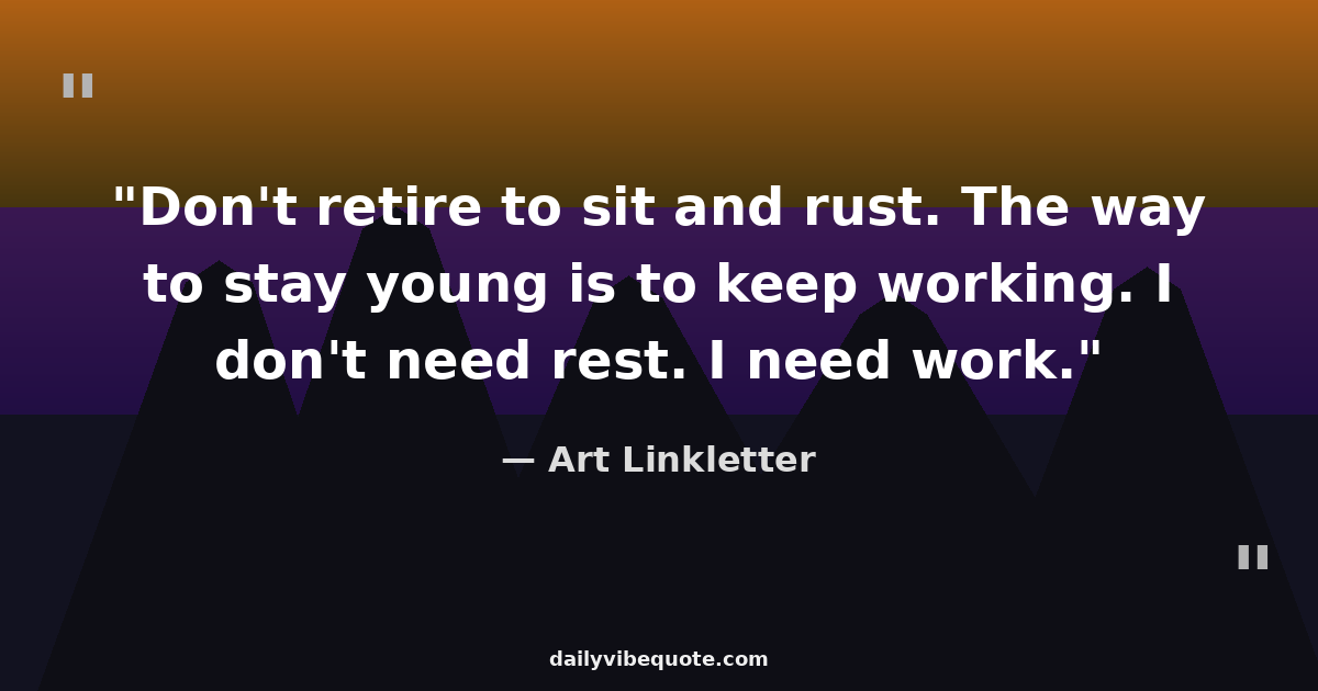"Don't retire to sit and rust. The way to stay young is to keep working. I don't need rest. I need work."