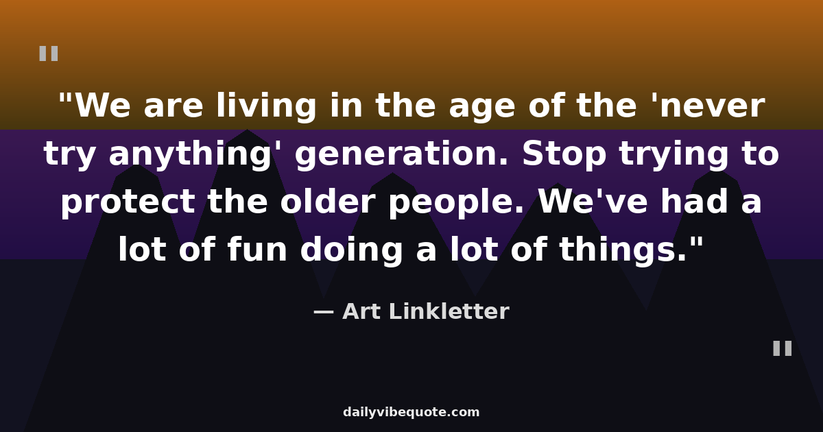 "We are living in the age of the 'never try anything' generation. Stop trying to protect the older people. We've had a lot of fun doing a lot of things."
