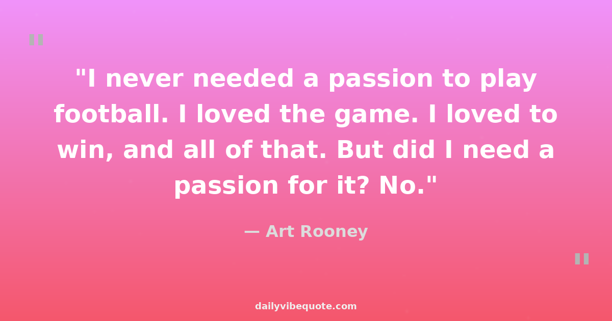 "I never needed a passion to play football. I loved the game. I loved to win, and all of that. But did I need a passion for it? No."