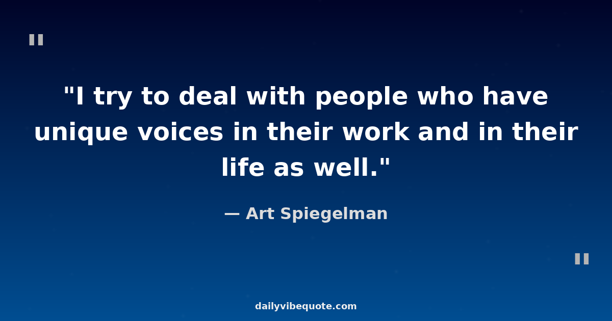 "I try to deal with people who have unique voices in their work and in their life as well."