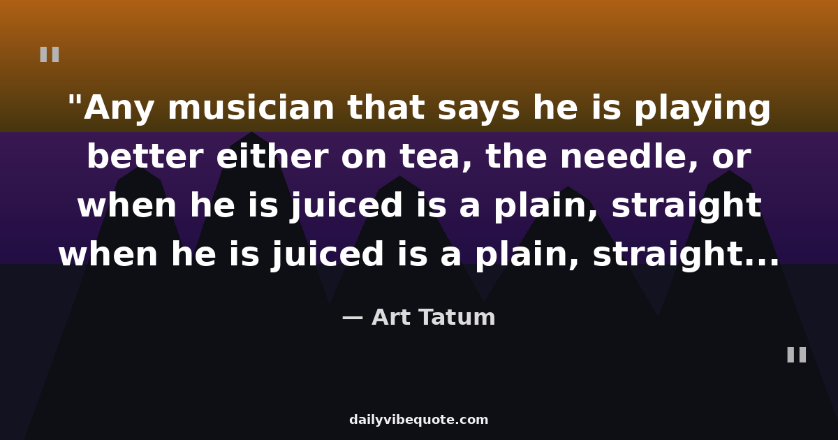 "Any musician that says he is playing better either on tea, the needle, or when he is juiced is a plain, straight liar. When I get too much to drink, I can't even finger well, let alone play decent ideas. If I am high on reefer, I can't even finger, period."