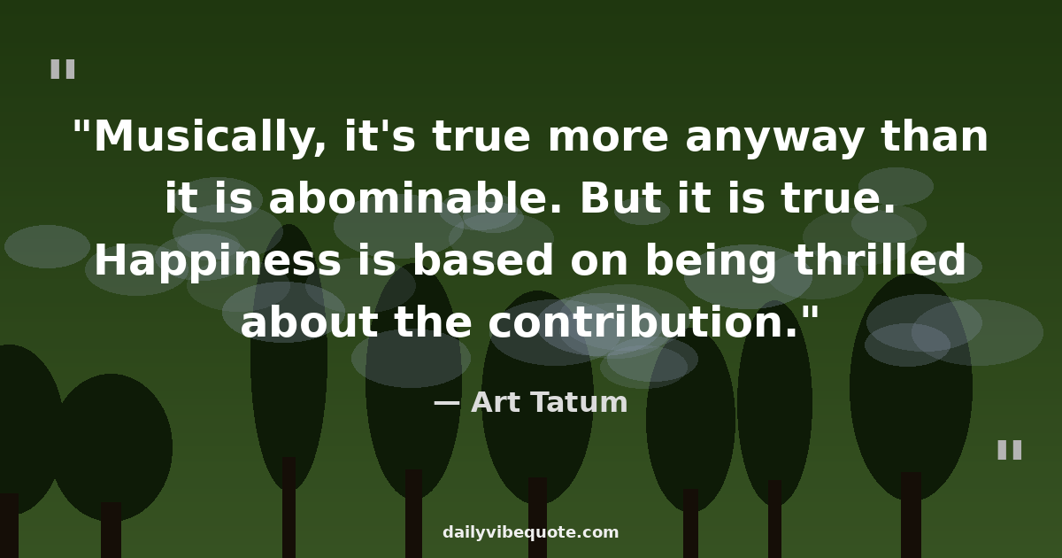 "Musically, it's true more anyway than it is abominable. But it is true. Happiness is based on being thrilled about the contribution."