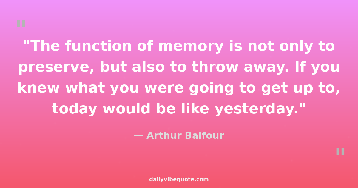 "The function of memory is not only to preserve, but also to throw away. If you knew what you were going to get up to, today would be like yesterday."
