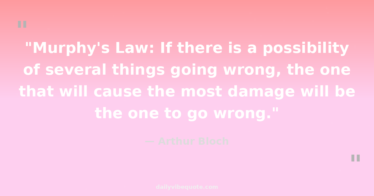 "Murphy's Law: If there is a possibility of several things going wrong, the one that will cause the most damage will be the one to go wrong."