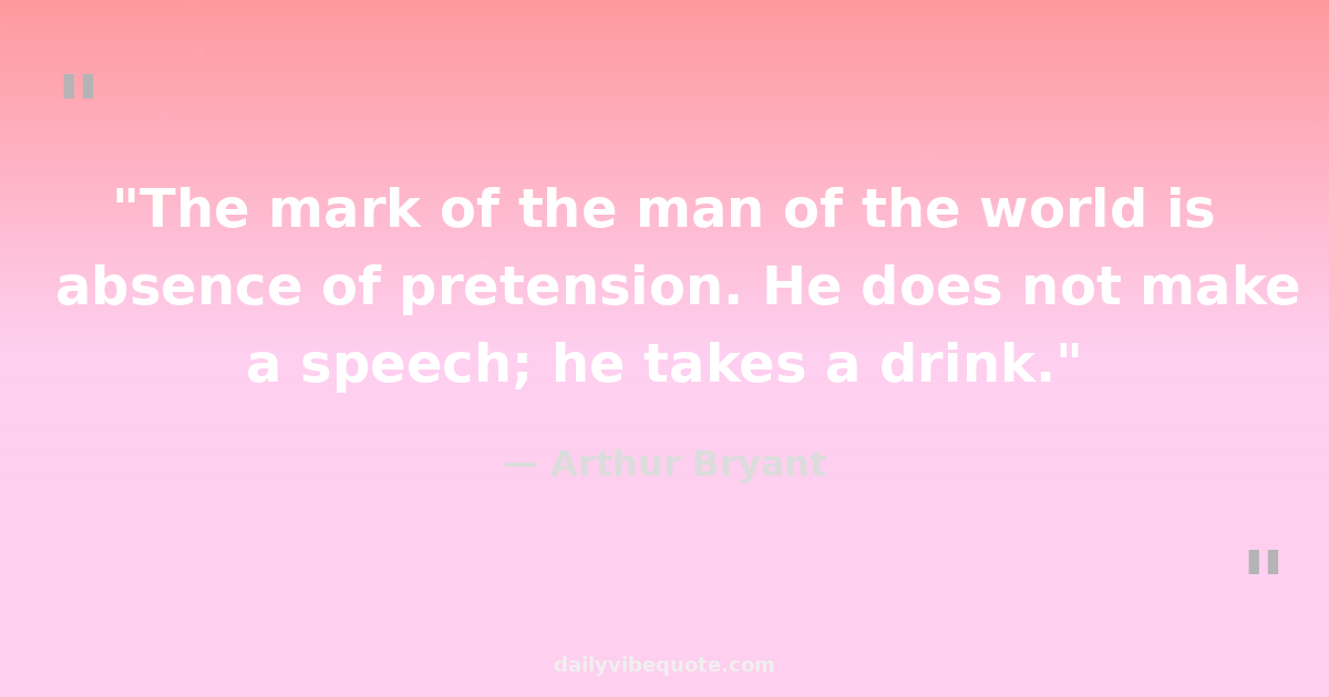 "The mark of the man of the world is absence of pretension. He does not make a speech; he takes a drink."