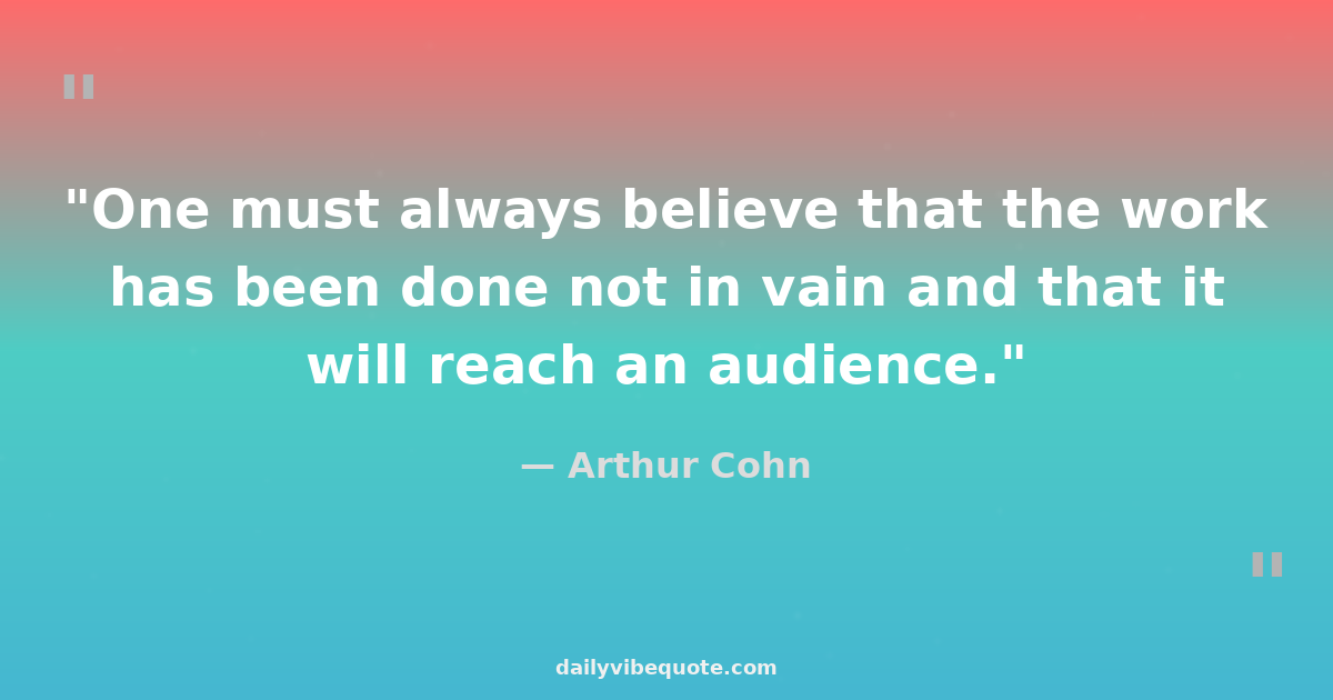 "One must always believe that the work has been done not in vain and that it will reach an audience."