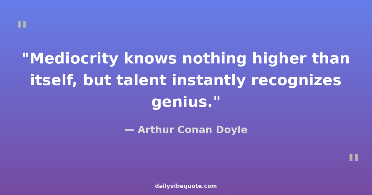 "Mediocrity knows nothing higher than itself, but talent instantly recognizes genius."