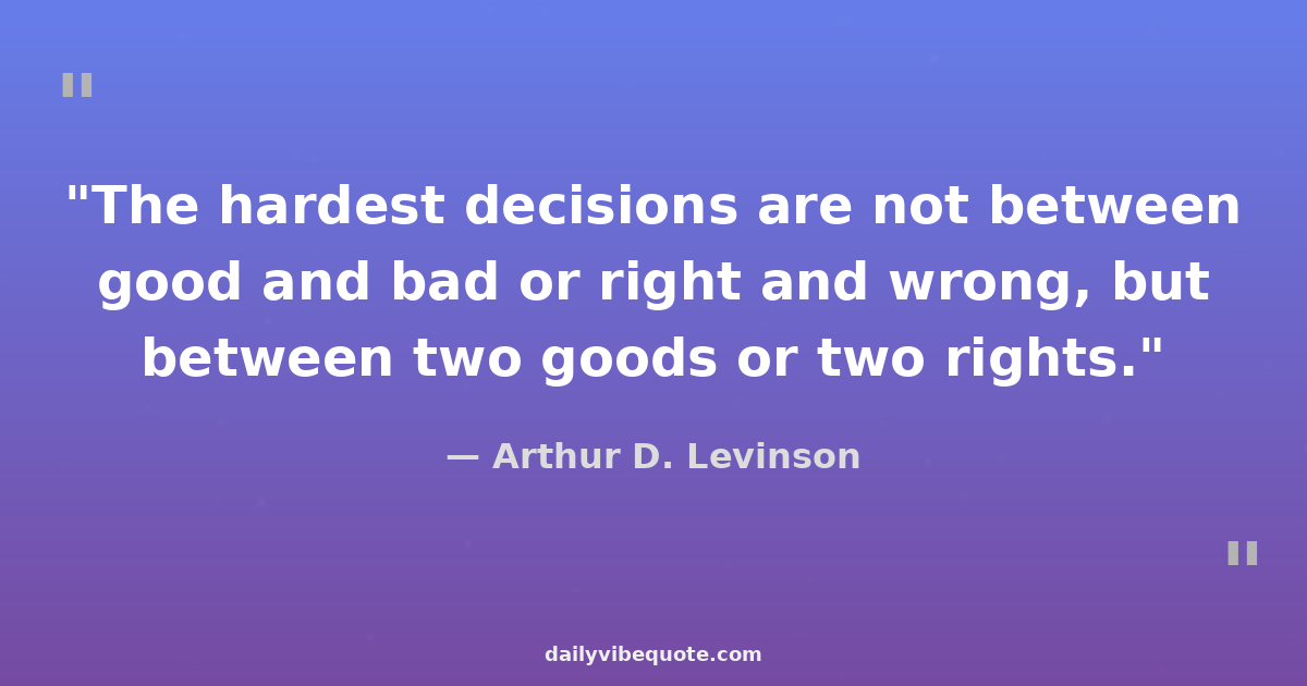 "The hardest decisions are not between good and bad or right and wrong, but between two goods or two rights."