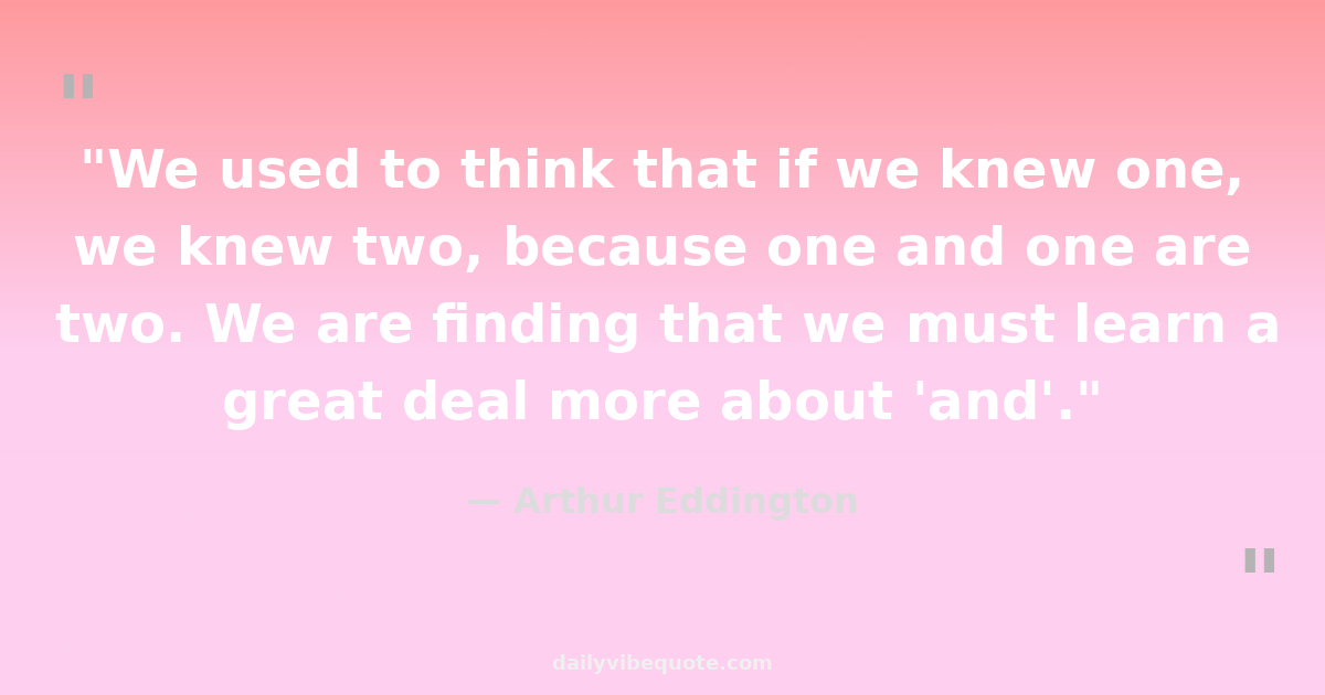 "We used to think that if we knew one, we knew two, because one and one are two. We are finding that we must learn a great deal more about 'and'."