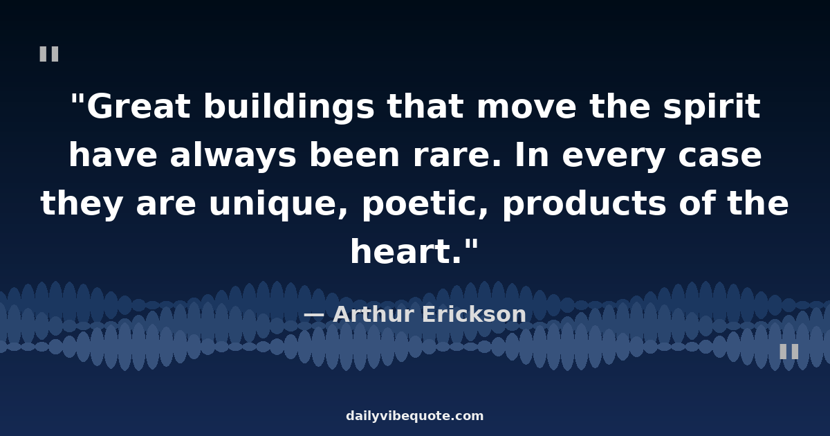 "Great buildings that move the spirit have always been rare. In every case they are unique, poetic, products of the heart."