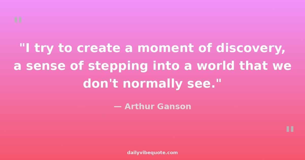 "I try to create a moment of discovery, a sense of stepping into a world that we don't normally see."