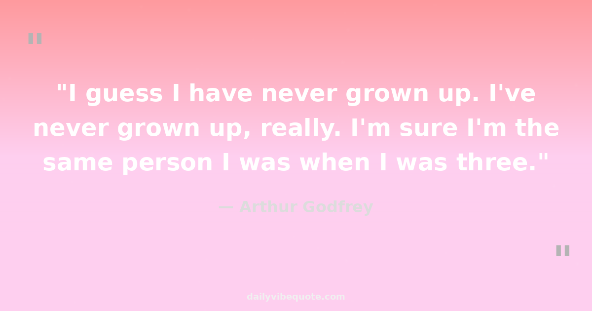 "I guess I have never grown up. I've never grown up, really. I'm sure I'm the same person I was when I was three."