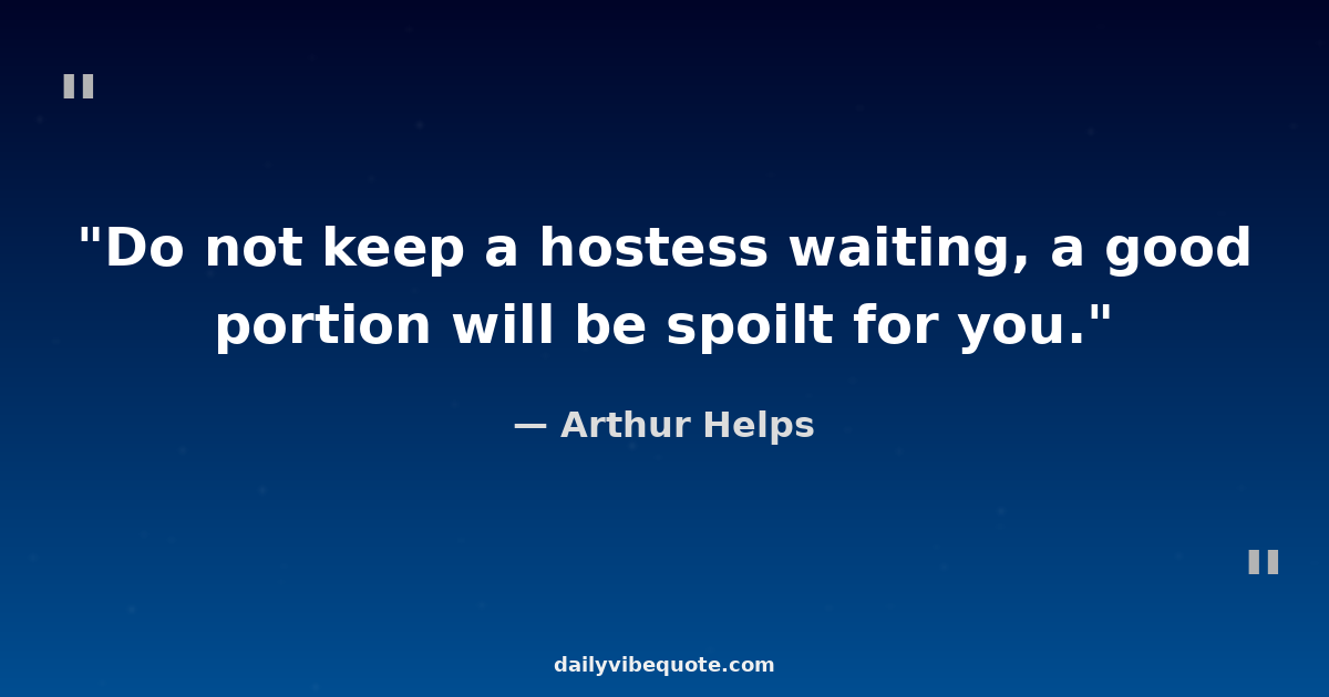 "Do not keep a hostess waiting, a good portion will be spoilt for you."