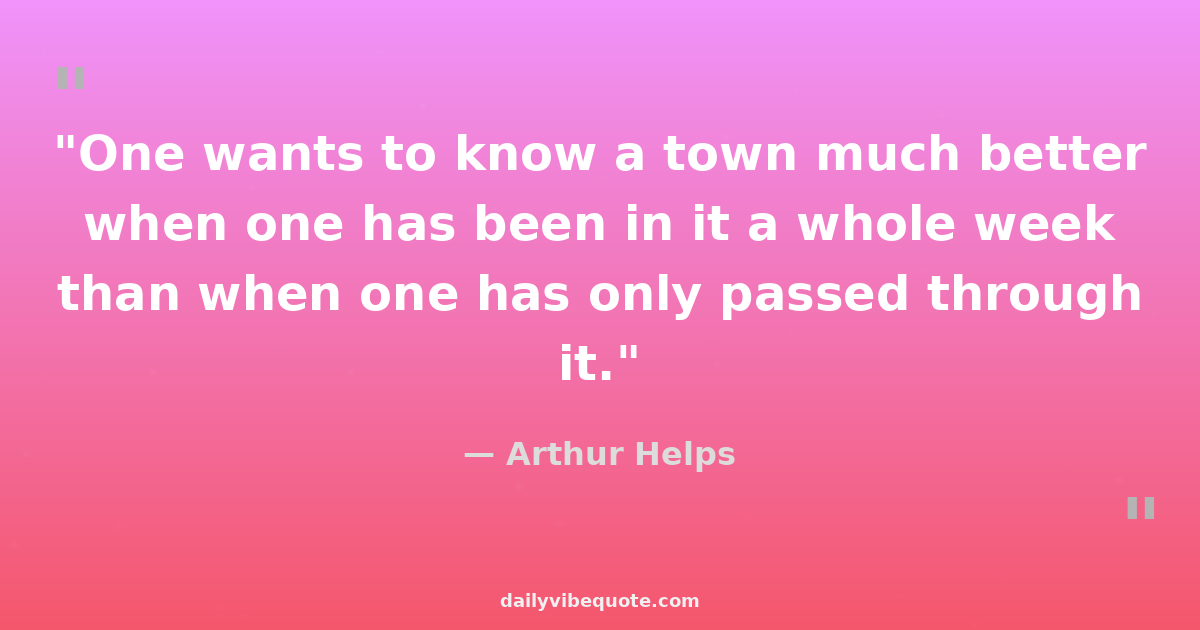 "One wants to know a town much better when one has been in it a whole week than when one has only passed through it."