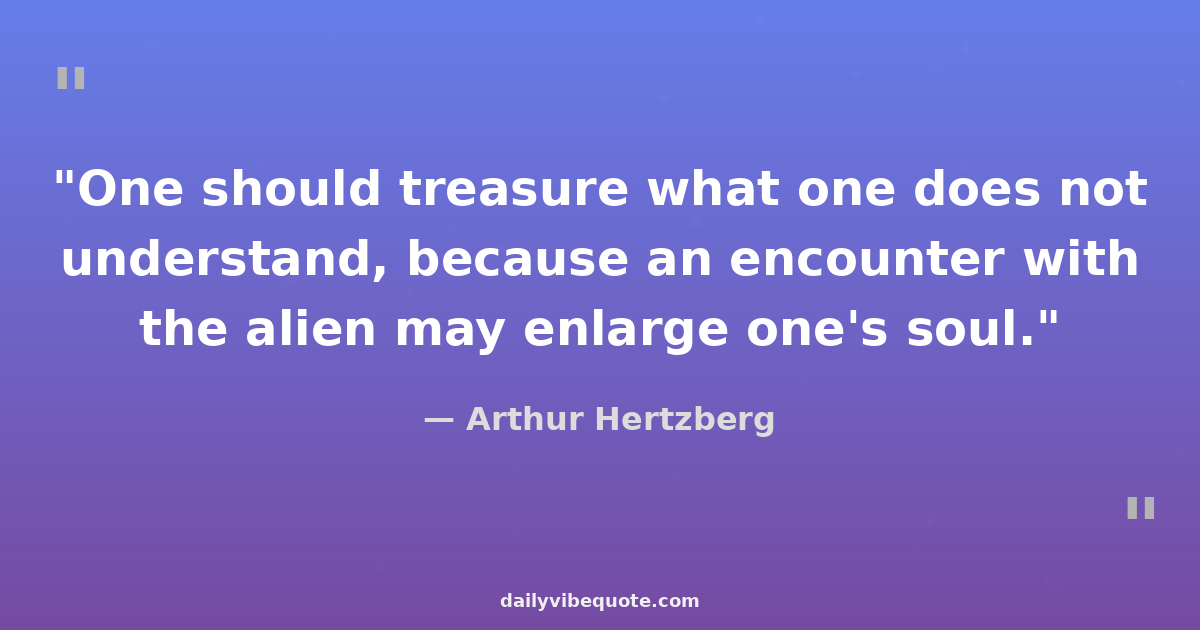 "One should treasure what one does not understand, because an encounter with the alien may enlarge one's soul."