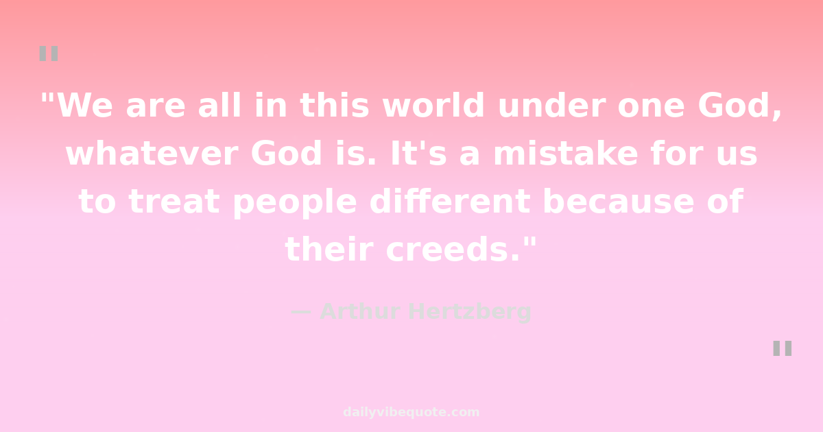 "We are all in this world under one God, whatever God is. It's a mistake for us to treat people different because of their creeds."