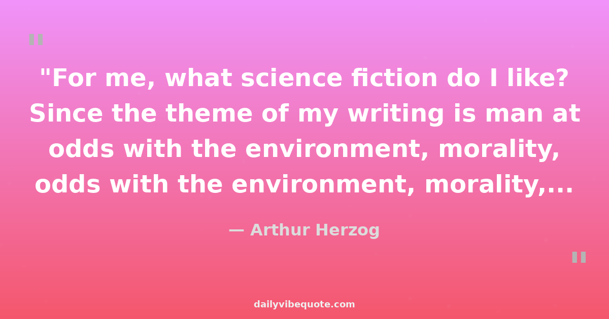 "For me, what science fiction do I like? Since the theme of my writing is man at odds with the environment, morality, social institutions, I have to say I like the science fiction of ideas."