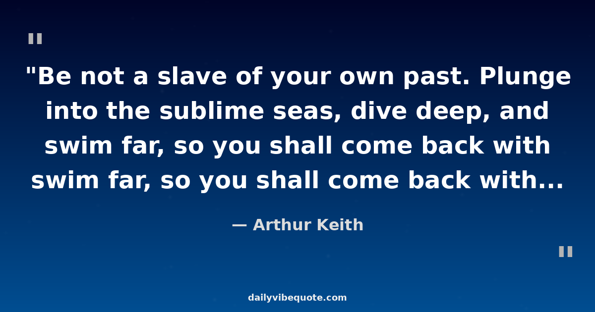 "Be not a slave of your own past. Plunge into the sublime seas, dive deep, and swim far, so you shall come back with self-respect, with new power, with an advanced experience that shall explain and overlook the old."