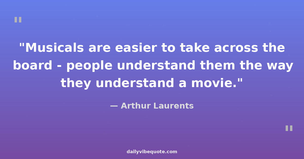 Arthur Laurents was an American playwright, screenwriter, and director best known for his work in theatre and film. He was born in Brooklyn, New York, in 1917. Laurents wrote the scripts for several successful plays and musicals, including 'West Side Story' and 'Gypsy'. He was known for his sharp wit and biting dialogue, which earned him critical acclaim in the entertainment industry.