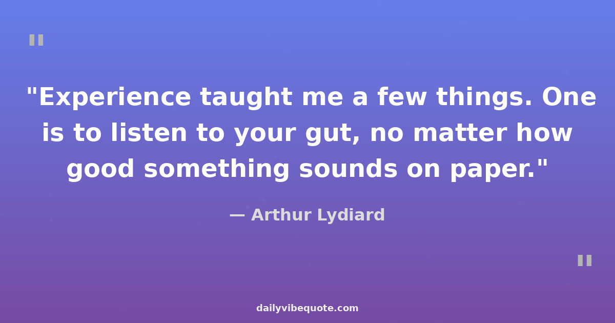 "Experience taught me a few things. One is to listen to your gut, no matter how good something sounds on paper."
