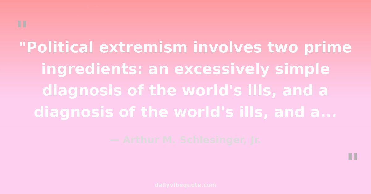 "Political extremism involves two prime ingredients: an excessively simple diagnosis of the world's ills, and a conviction that there are identifiable villains back of it all."