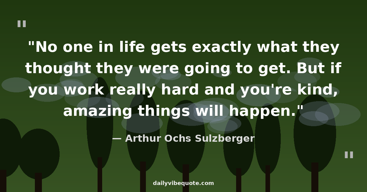 "No one in life gets exactly what they thought they were going to get. But if you work really hard and you're kind, amazing things will happen."