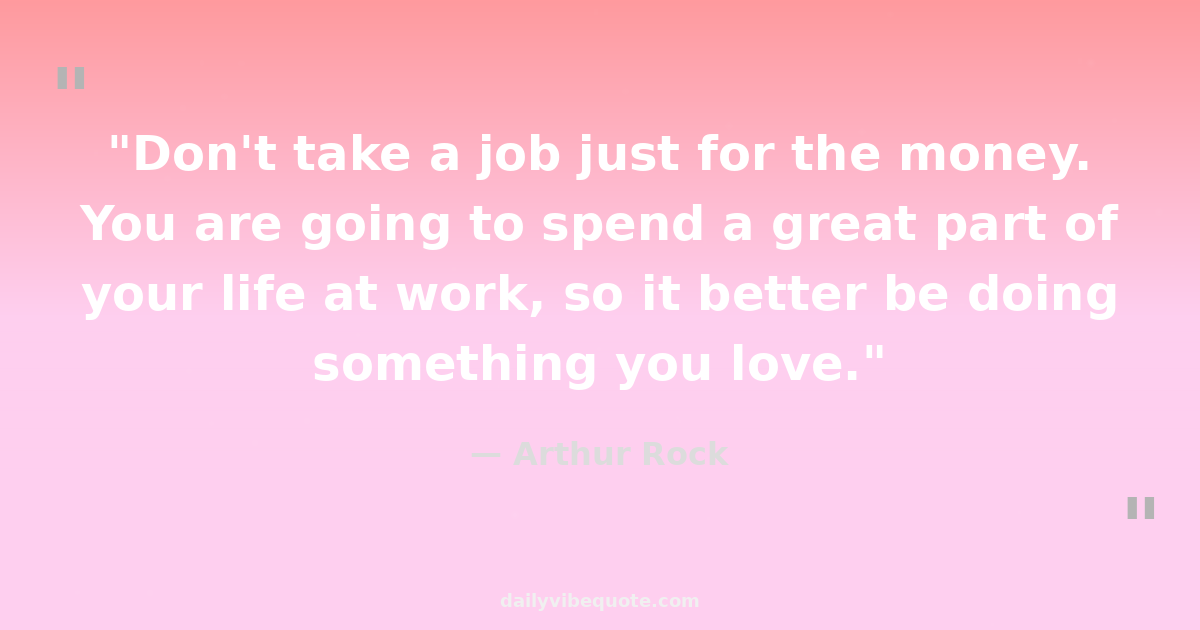 "Don't take a job just for the money. You are going to spend a great part of your life at work, so it better be doing something you love."