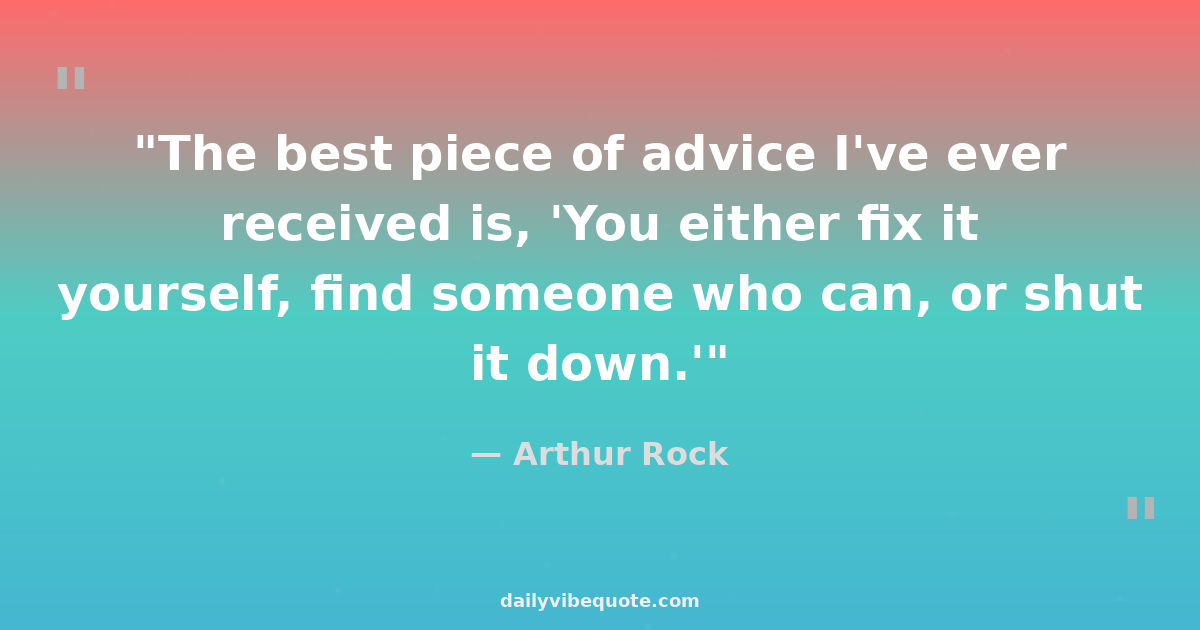 "The best piece of advice I've ever received is, 'You either fix it yourself, find someone who can, or shut it down.'"