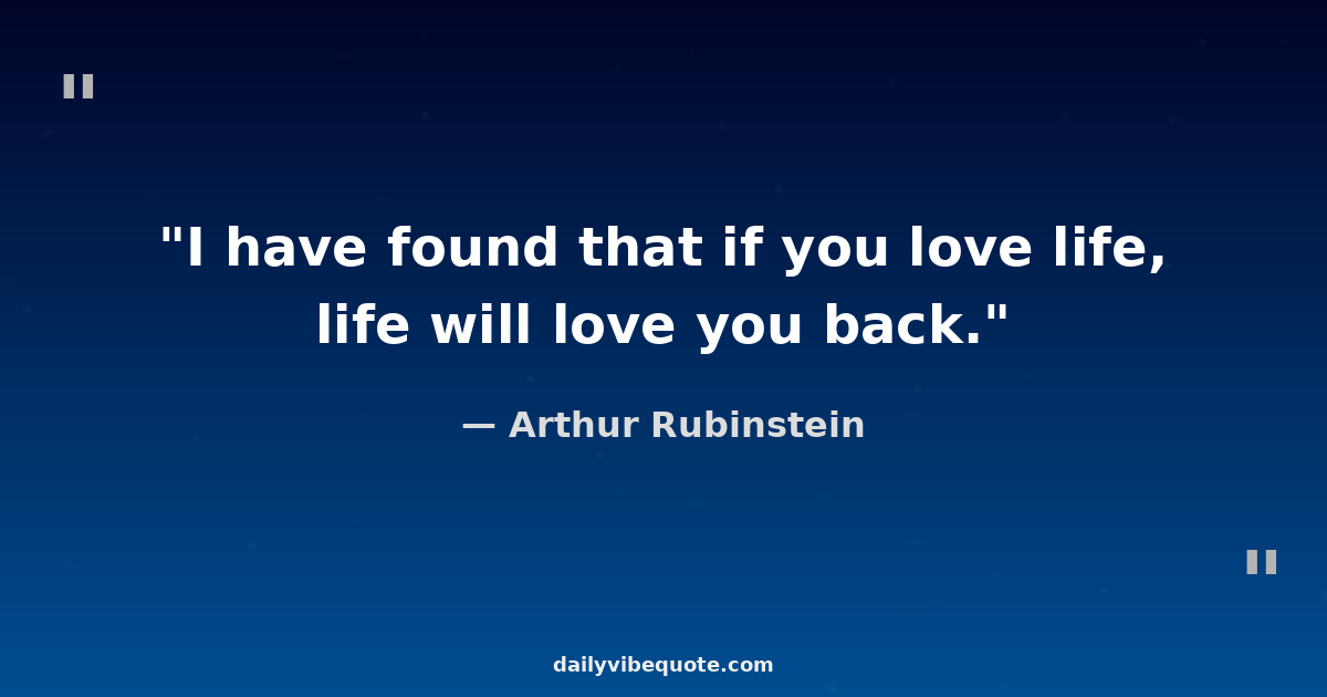 "I have found that if you love life, life will love you back."