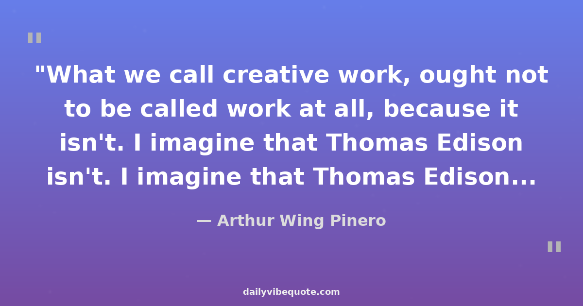 "What we call creative work, ought not to be called work at all, because it isn't. I imagine that Thomas Edison never did a day's work in his last fifty years."
