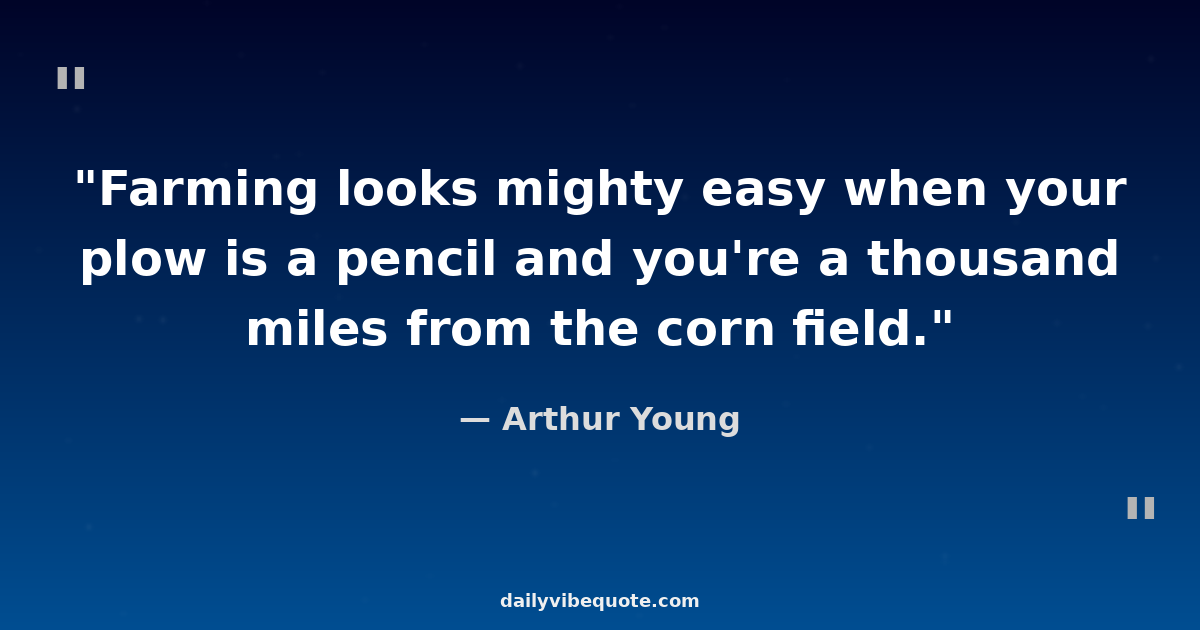 "Farming looks mighty easy when your plow is a pencil and you're a thousand miles from the corn field."