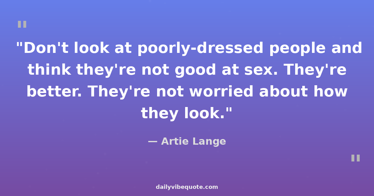 "Don't look at poorly-dressed people and think they're not good at sex. They're better. They're not worried about how they look."
