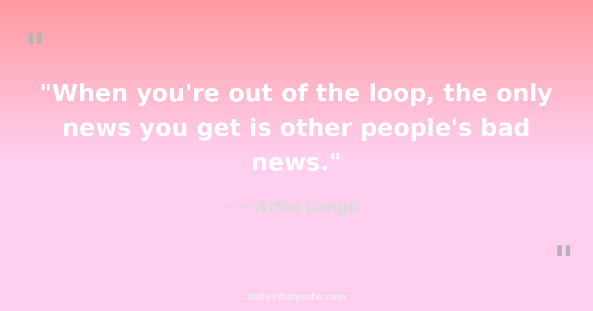 "When you're out of the loop, the only news you get is other people's bad news."
