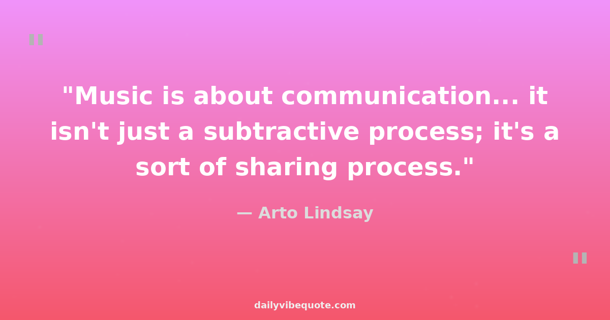 "Music is about communication... it isn't just a subtractive process; it's a sort of sharing process."