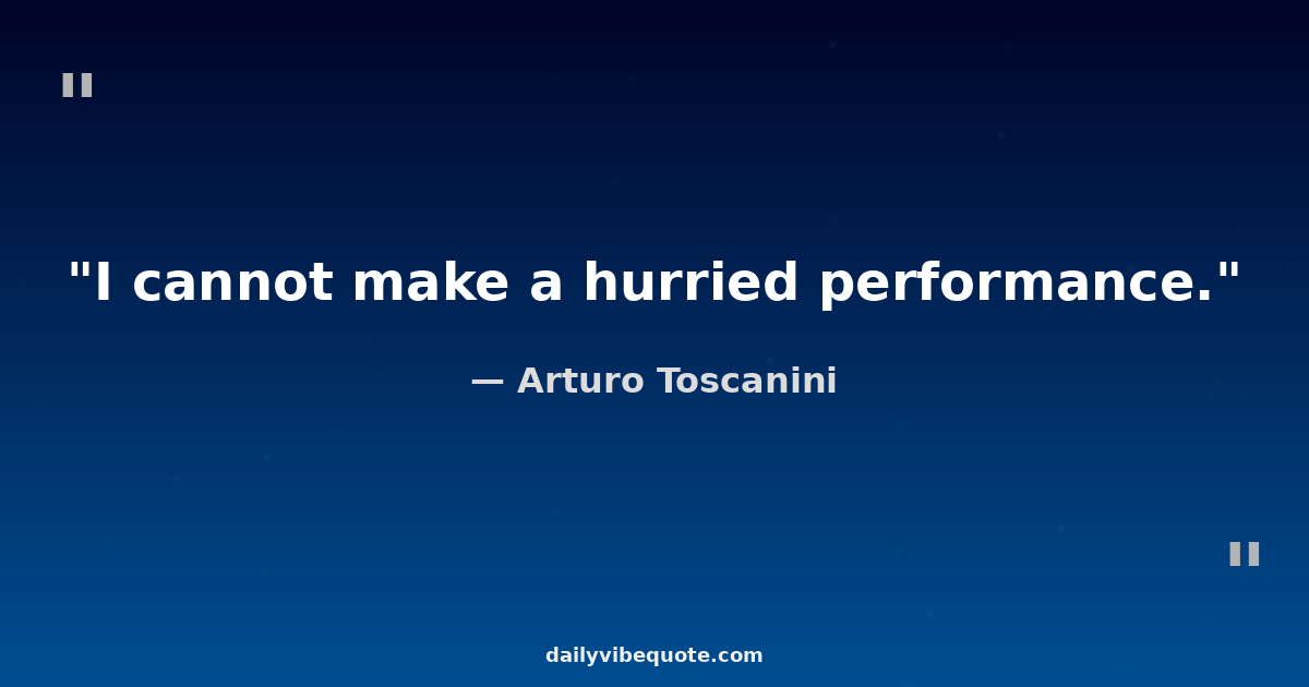 "I cannot make a hurried performance."