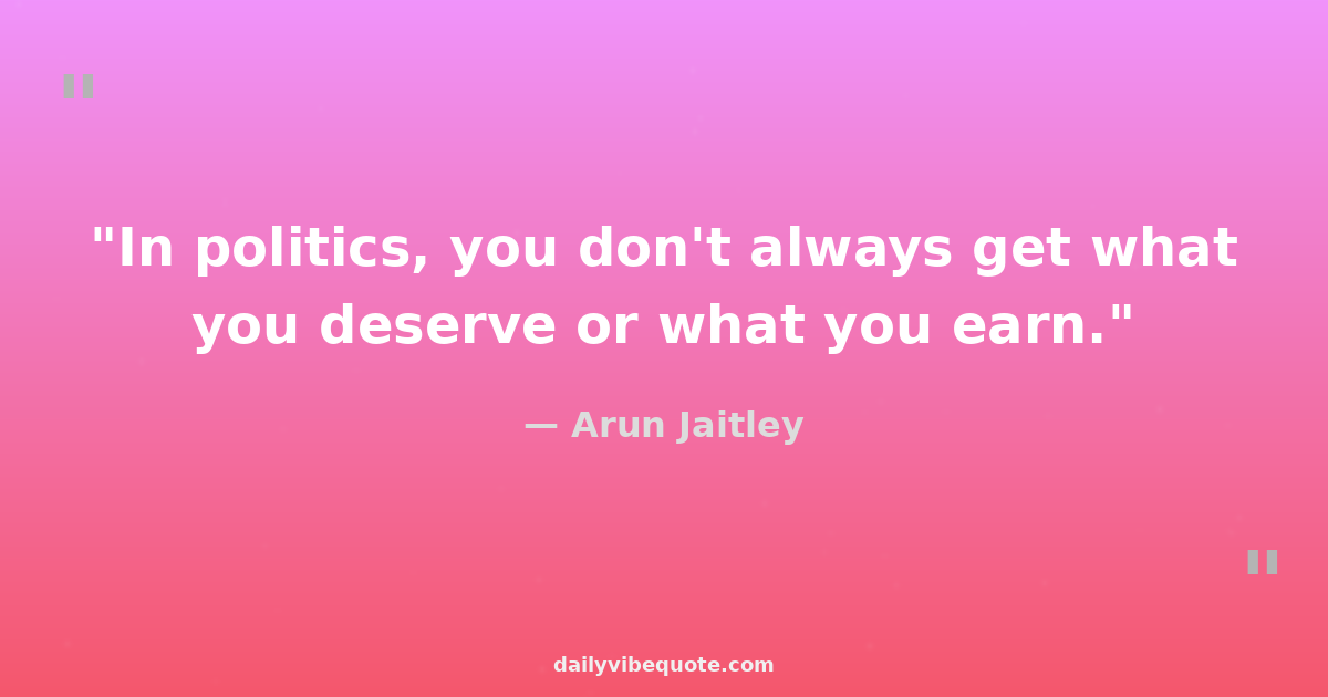 "In politics, you don't always get what you deserve or what you earn."