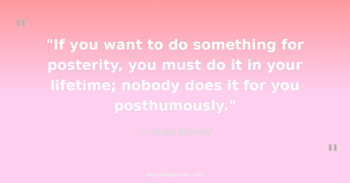 "If you want to do something for posterity, you must do it in your lifetime; nobody does it for you posthumously."