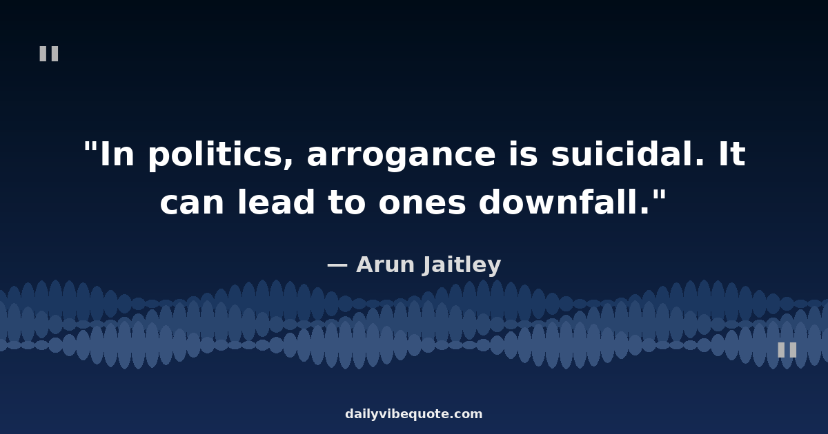 "In politics, arrogance is suicidal. It can lead to ones downfall."