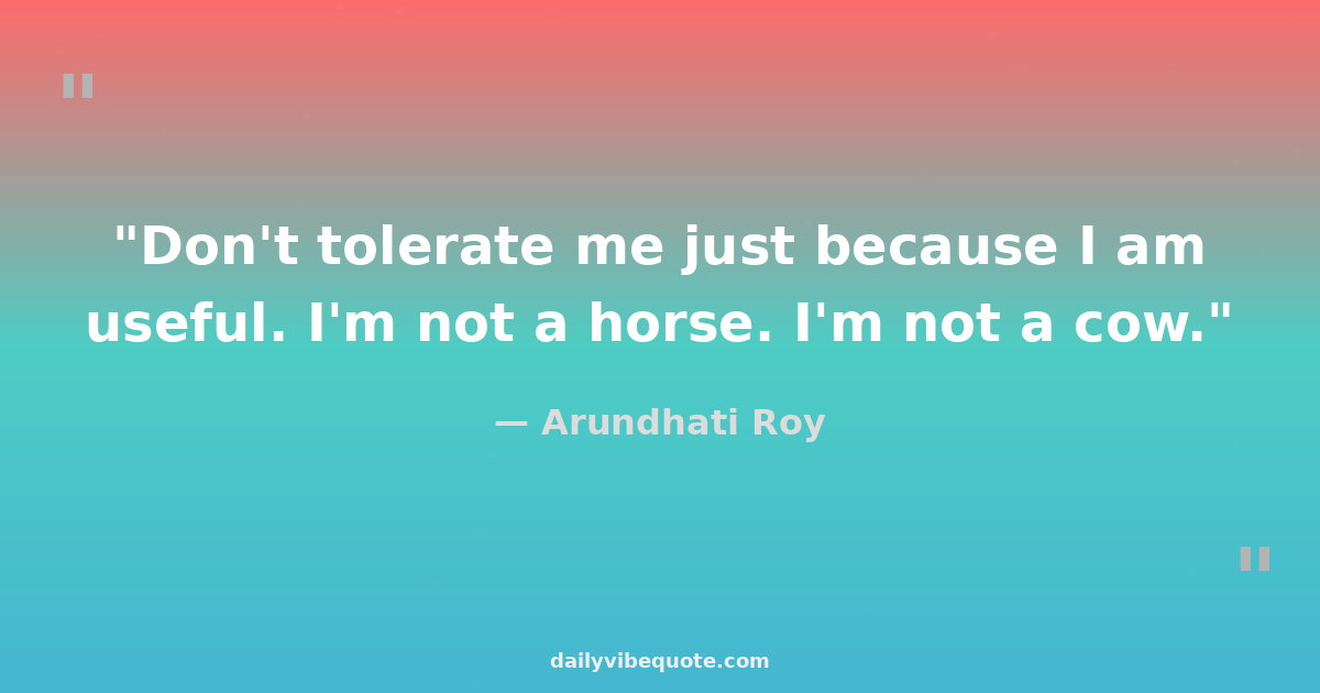 "Don't tolerate me just because I am useful. I'm not a horse. I'm not a cow."