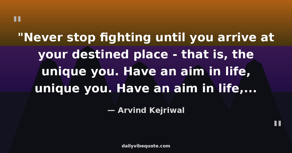 "Never stop fighting until you arrive at your destined place - that is, the unique you. Have an aim in life, continuously acquire knowledge, work hard, and have perseverance to realise the great life."
