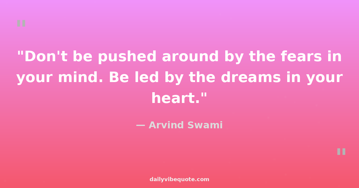 "Don't be pushed around by the fears in your mind. Be led by the dreams in your heart."