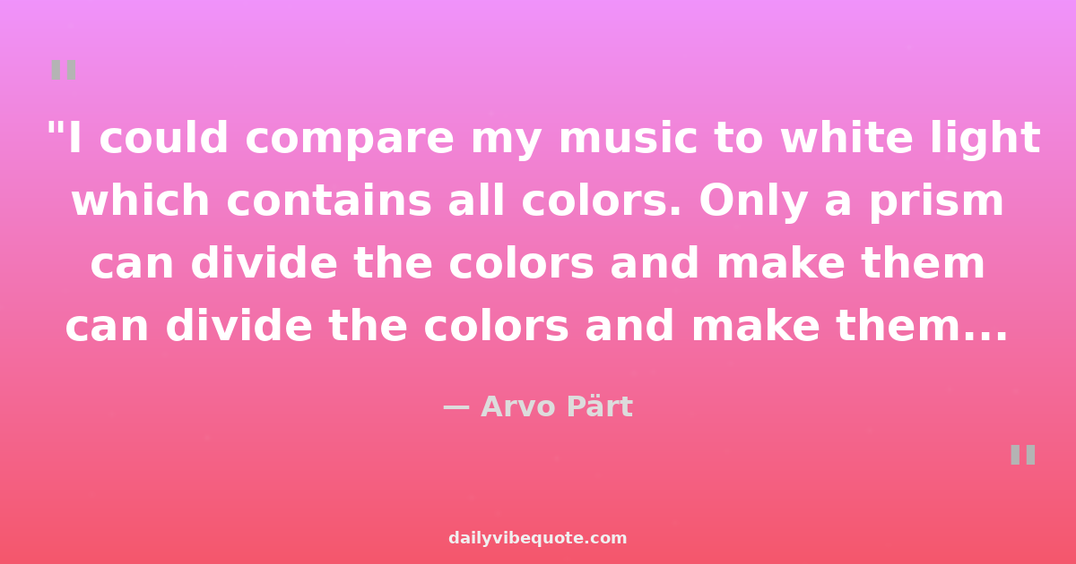 "I could compare my music to white light which contains all colors. Only a prism can divide the colors and make them appear; this prism could be the spirit of the listener."