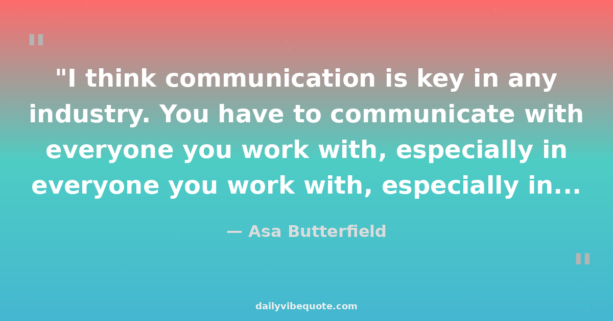 "I think communication is key in any industry. You have to communicate with everyone you work with, especially in this industry. You have such a short amount of time to get to know these strangers you're working with."