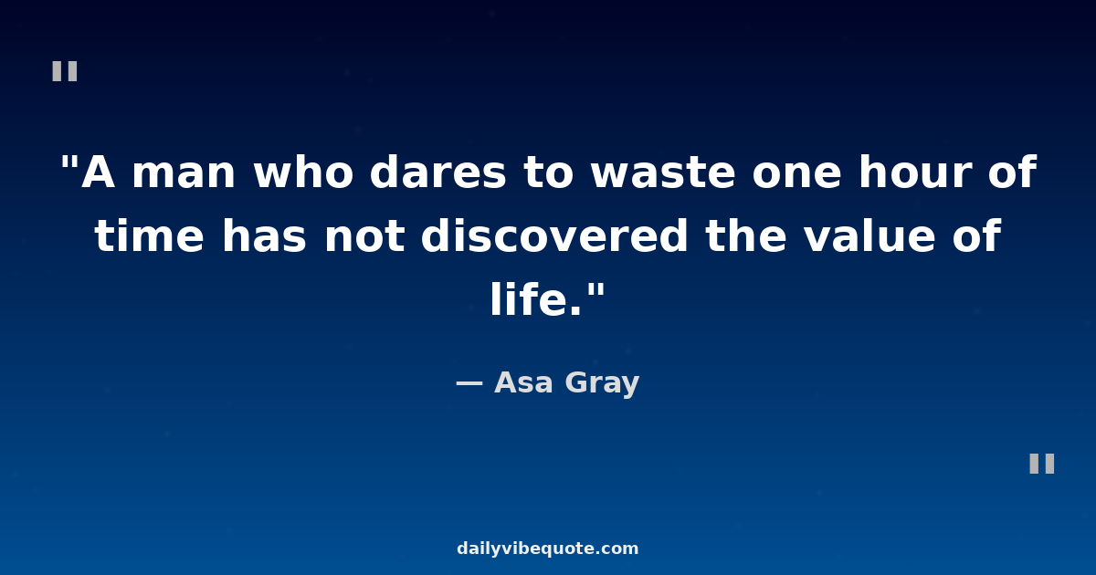 "A man who dares to waste one hour of time has not discovered the value of life."
