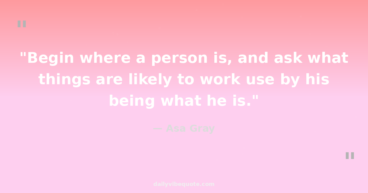 "Begin where a person is, and ask what things are likely to work use by his being what he is."