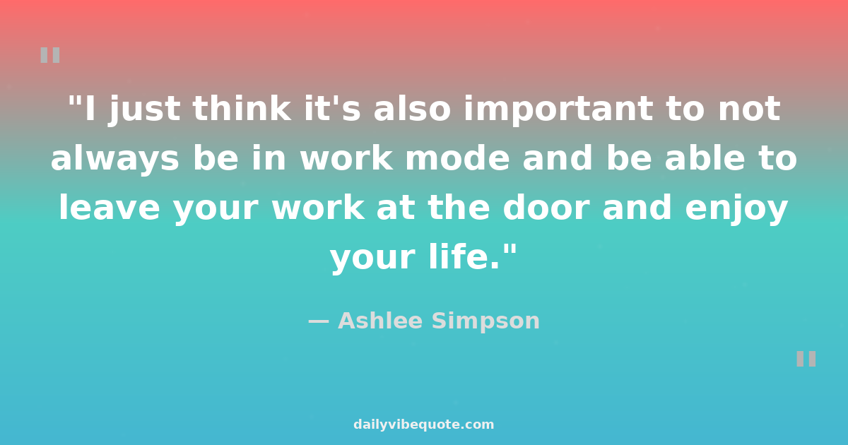 "I just think it's also important to not always be in work mode and be able to leave your work at the door and enjoy your life."