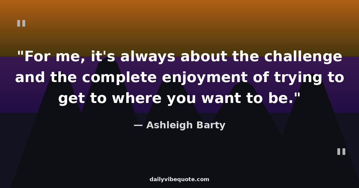 "For me, it's always about the challenge and the complete enjoyment of trying to get to where you want to be."